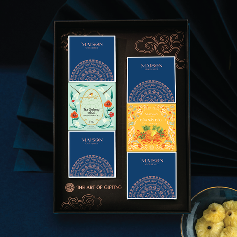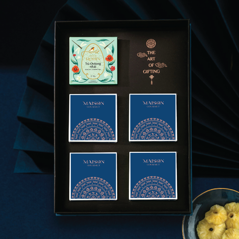 Mâm Cỗ Bánh Trung Thu - Ngự Uyển Thanh Ca 2 thuộc BST quà tặng mới ra mắt dành cho trung thu 2025 của Maison Gourmet. Hộp quà bao gồm 5 vị bánh trung thu hiện đại 120g thơm ngon kết hợp 1 trà Oolong cao...
