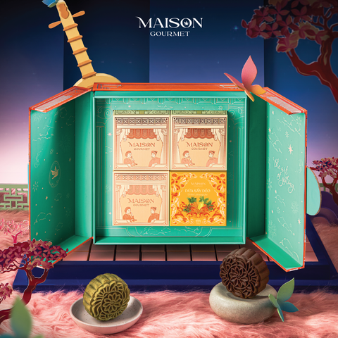 Mâm Cỗ Bánh Trung Thu - Book of Moon 1 bao gồm 4 vị bánh trung thu 120g, kết hợp với 1 hộp trái cây sấy dẻo 100g và 1 trà Oolong cao cấp tạo nên mâm cỗ trung thu tròn vị.