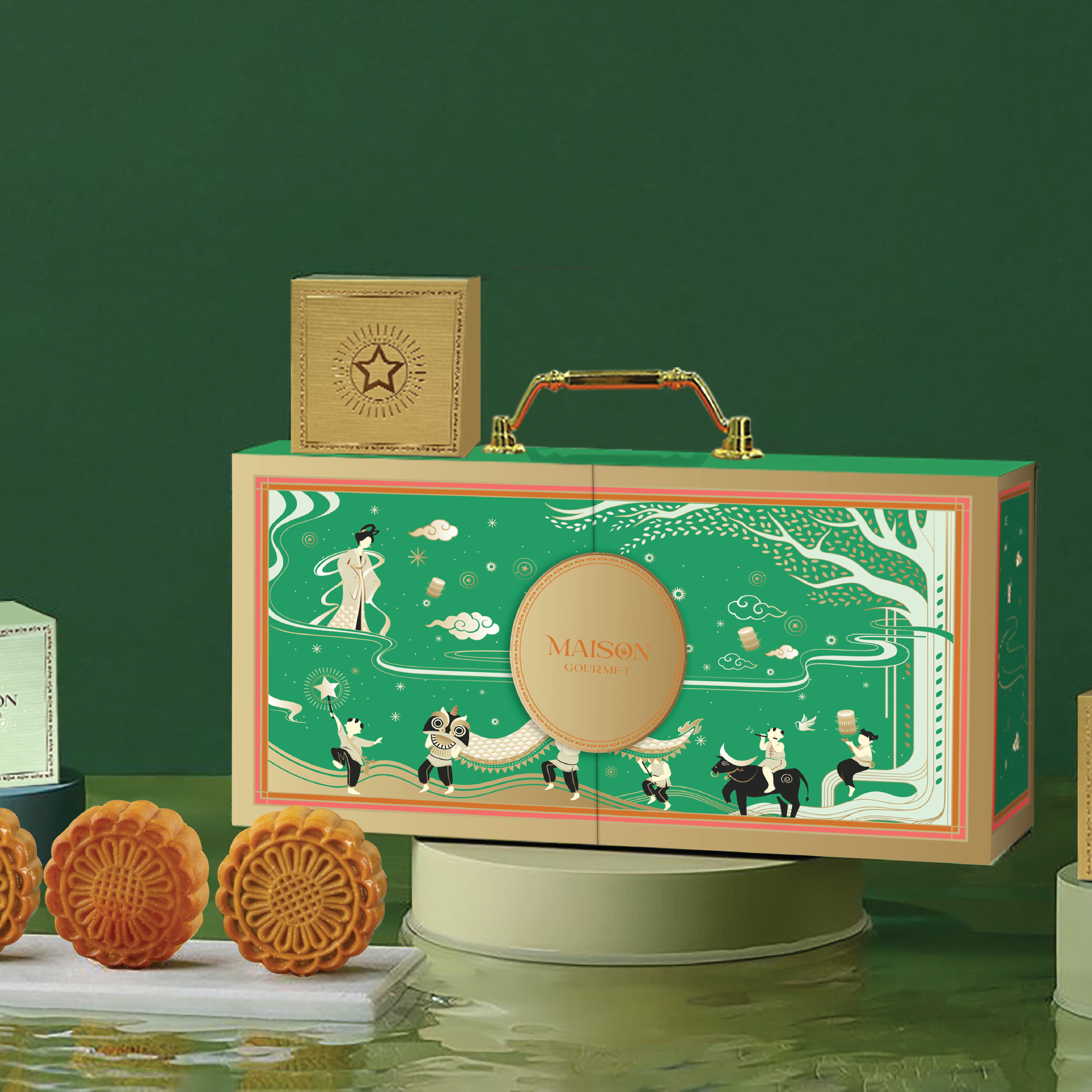 The Mid-Autumn Mooncake Collection - Le Hoi Anh Trang 2 is part of Maison Gourmet's newly launched gift collection for the 2025 Mid-Autumn Festival. This exquisite box includes 5 delicious 120g mooncakes and a premium Oolong tea, creating a perfect and celebratory offering.